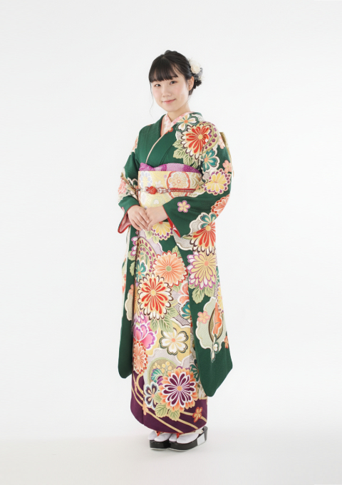 大輪の菊柄が華やかに映える振袖。