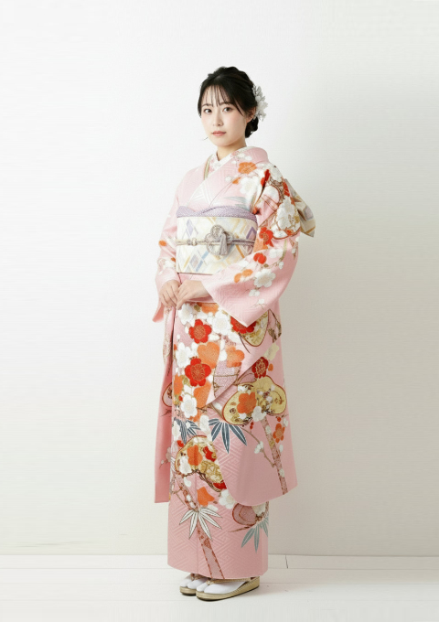 ふんわり優しい雰囲気が魅力の【淡色ピンク振袖】。