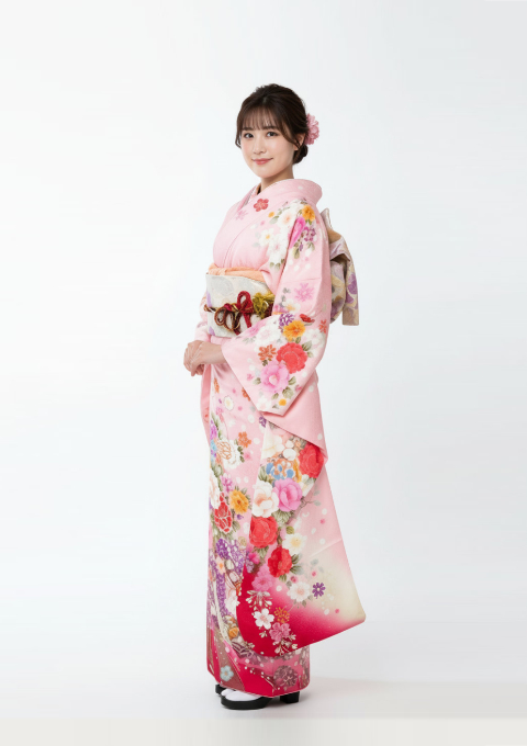 【04-10】淡いピンク×花柄の振袖|グラデーションが可愛い王道ガーリーデザイン