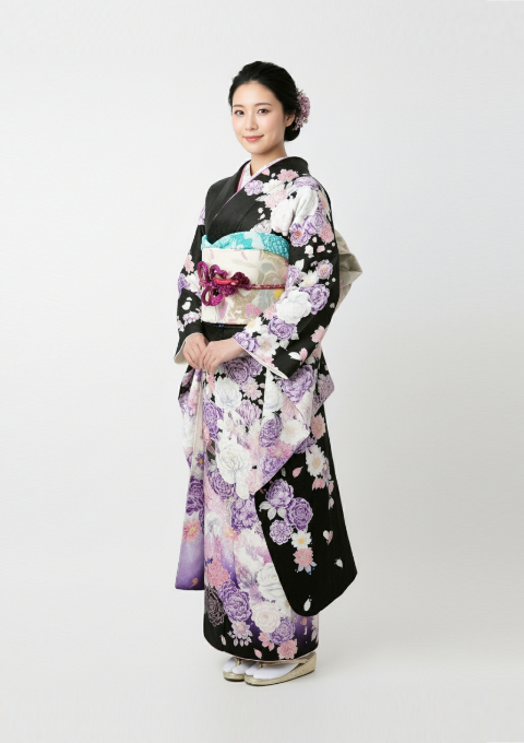 【01-05】ブラック×ラベンダー花柄の振袖|上品で大人可愛いフェミニンデザイン