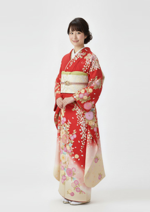 やさしい雰囲気が魅力の【赤振袖×淡色グラデーション】。