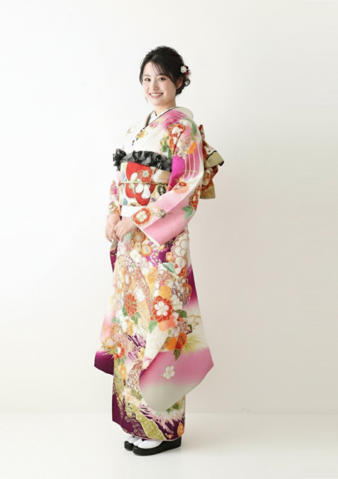 【20-21】アイボリー×ピンクグラデーションの振袖|やさしく華やかなフェミニンデザイン