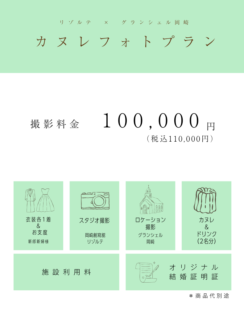リゾルテ×提携結婚式場での『カヌレフォトプラン』
