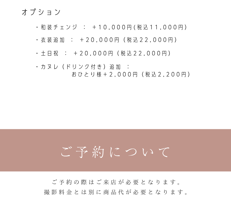 フォトスタジオ・リゾルテ(岡崎創寫舘)への撮影に関するお問い合わせ、ご来店予約をご希望の方は、